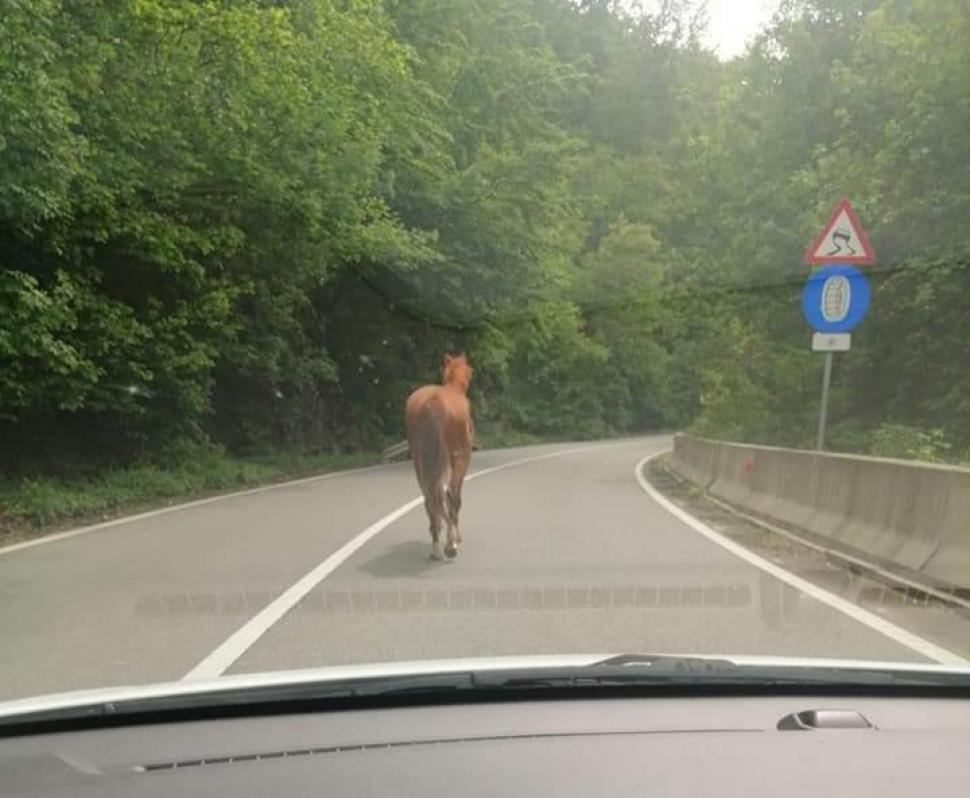 Pericol în trafic. Un cal a fost surprins de un șofer pe mijlocul drumului, în Defileul …