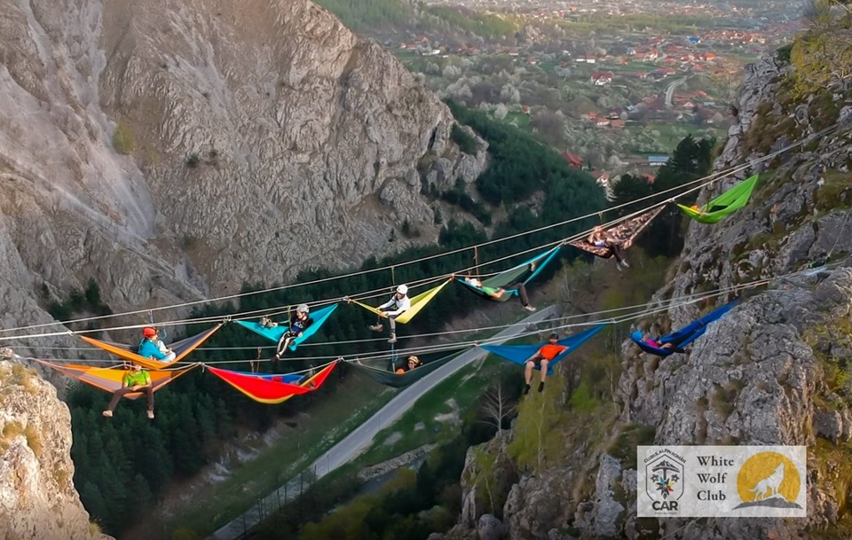 Povestea La Hamace a început din dorința de a oferi iubitorilor de aventură și relaxare contexte sociale și sportive inedite, culminând cu ancorarea hamacelor la înălțime. Primul episod, din 2017, ,,La hamace în Parc Titan”, în parteneriat cu Urban Camping și Frufru, s-a bucurat de peste 300 de participanți și 40 de hamace instalate. Următoarele ediții s-au desfășurat în areal montan, sub numele ”La Hamace între stânci”, unde participanţii entuziaști s-au bucurat de ateliere de escaladă, ateliere de noduri, trasee de via ferrata, de drumeție, foc de tabără și 10 hamace ancorate la 200 m de sol. ”Vă așteptăm la prima ediție pe anul 2019, La Hamace între Stânci IV, să continuăm povestea la Baia de Fier – Peștera Muierii, și să ne bucurăm de frumusețea zonei și de multiplele activități pe care le vom face. Acesta este un eveniment al Clubului Alpin Român în parteneriat cu Clubul White Wolf. Public țintă: 16-20 de persoane, cu o condiție fizică medie și peste medie, interesați de activități montane și de activități sportive în general. Vom organiza ateliere de escaladă și via ferrata structurate în funcție de abilitățile participanților – inclusiv începători. Vom traversa puntea indiană pentru a ajunge la hamacele pregătite deja pentru voi, și ne vom împărți în două grupe: cei mai temerari se vor legăna primii în hamace, urmați apoi de cei mai răbdători. Vom face o drumeție la Şura Haiducilor, de unde puteţi admira de la înălţime Cheile Olteţului. Programul pe zile va fi structurat în apropierea evenimentului, în funcție de condițiile meteorologice. Echipamentul obligatoriu pentru participanți este cel de drumeție”, au transmis organizatorii evenimentului montan. Costurile participării sunt de 100 de lei/persoană. Camparea este gratuită în incinta cabanei, sau cazare la diversele pensiuni din zonă: Vila Nico, Casa Iancului etc. Participanții își asigură cazarea și transportul. Înscrierea se poate face prin e-mail la adresa: sirbu.simina@gmail.com în care trebuie specificat numele complet, experiența montană, dacă aveți echipament de escaladă (cască, ham, espadrile) și, în câteva cuvinte, ce așteptări aveți de la acest eveniment.