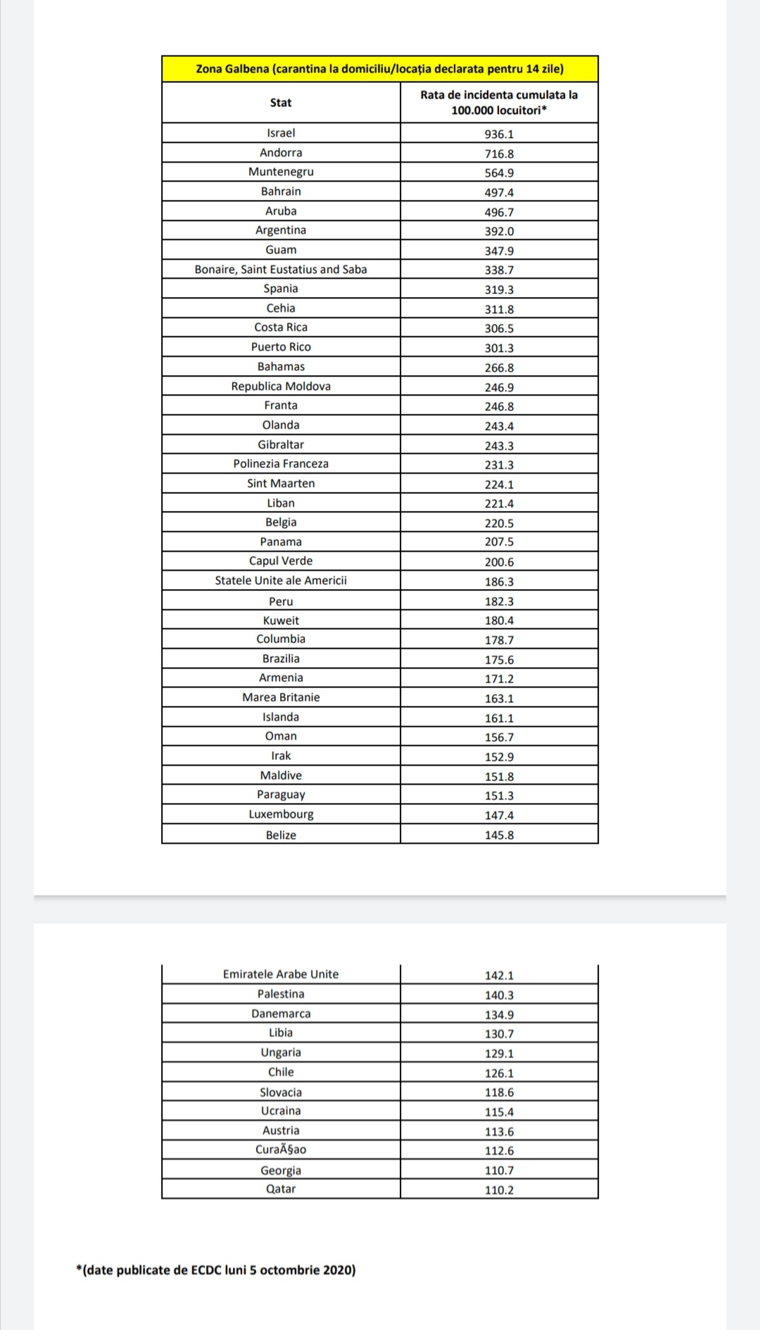 (ATENTIE, lista intra in vigoare cu data de 07.10.2020, ora 00:00).