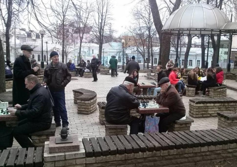 ”Natura se vindecă, vârstnicii s-au întors să joace șah în parcurile din Kiev”, este mesajul care însoțește…
