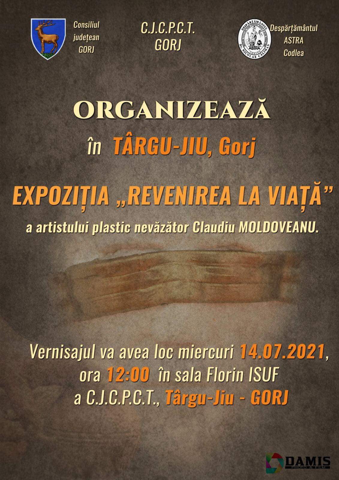 Centrul Județean pentru Conservarea și Promovarea Culturii Tradiționale Gorj, Consiliul Județean Gorj și Despărțământul ASTRA Codlea vă invită la vernisarea expoziției “Revenirea la viață”, miercuri, 14 iulie 2021, începând cu ora 12.00, la Sala “Florin Isuf”.