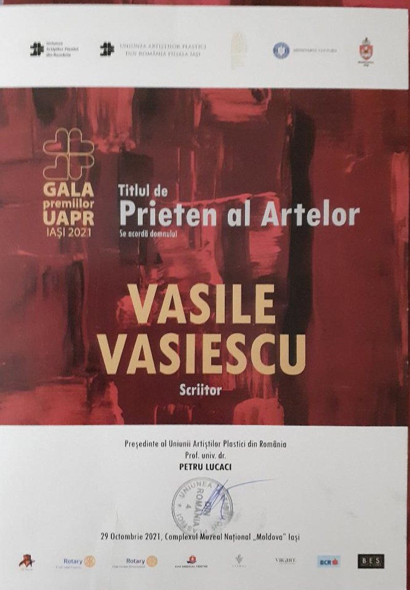 Io, de-acum Prieten al Artelor, uns la ediția din anul acesta al Galei Premiilor Uniunii Artiștilor Plastici din România, care s-a desfășurat în seara zilei de vineri, 29 octombrie 2021, cu mult fast și eleganță risipită darnic la Palatul Culturii din Iași, „declar pe propria-mi răspundere”, că am fost onorat cu asupra de măsură și că m-am simțit excepțional, lucru pentru care le mulțumesc organizatorilor, juriului și tuturor celor pe care i-am întâlnit la o așa…