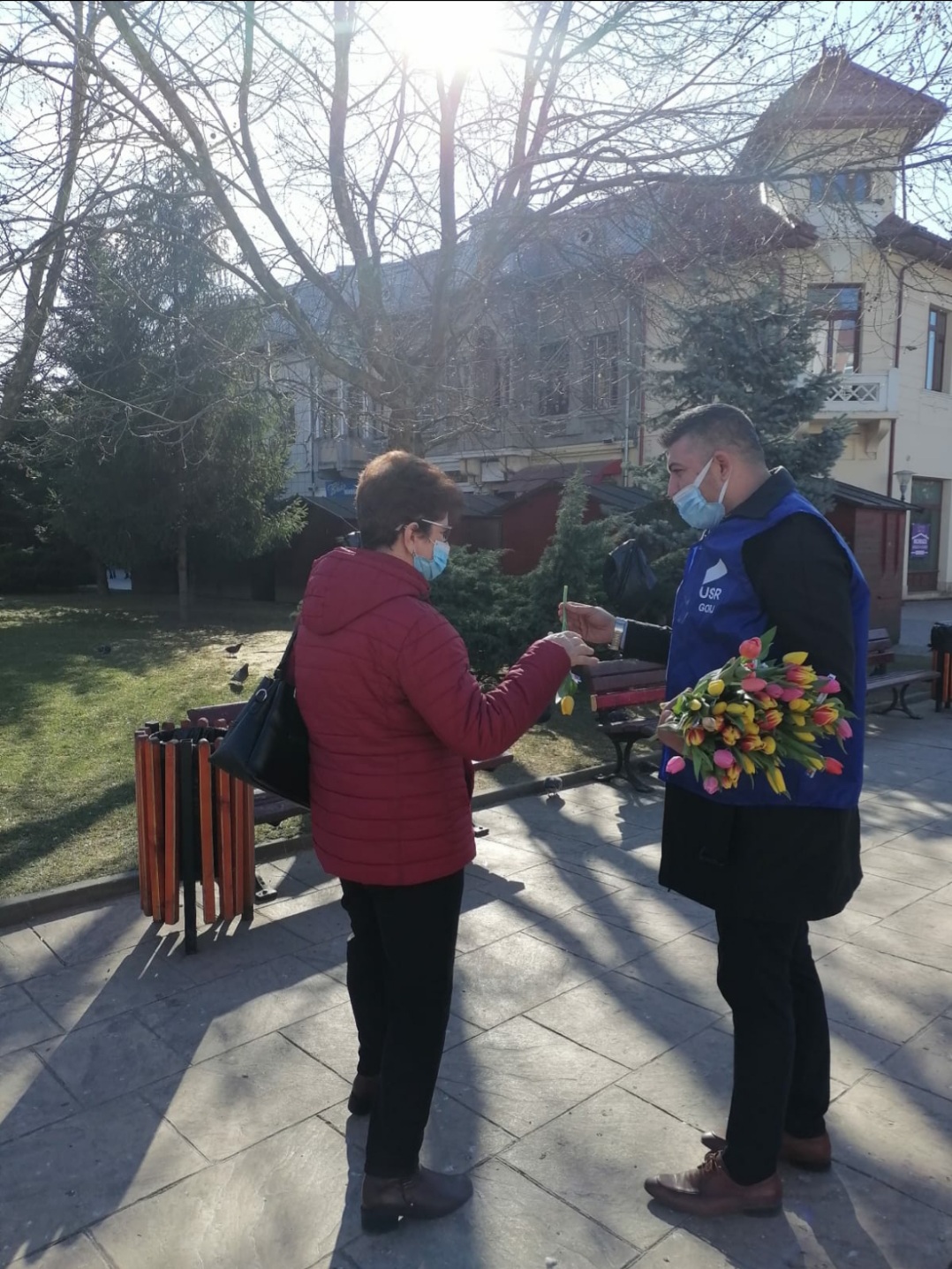Reprezentanții USR Gorj au marcat începutul de primăvară, oferind lalele și mărțișoare tuturor femeilor întâlnite în centrul municipiului.
