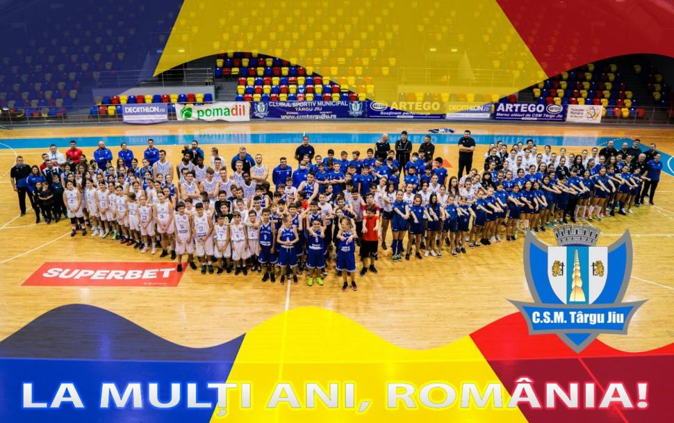CSM Târgu Jiu i-a mobilizat pe majoritatea sportivilor aflaţi în competiţii pentru a realiza o fotografie impresionantă de Ziua Naţională a României. Deşi este un club relativ tânăr, clubul Primăriei Târgu Jiu numără deja câteva sute de sportivi legitimaţi, seniori şi juniori, dar mai ales copii care nu sunt încă înscrişi în competiţii.