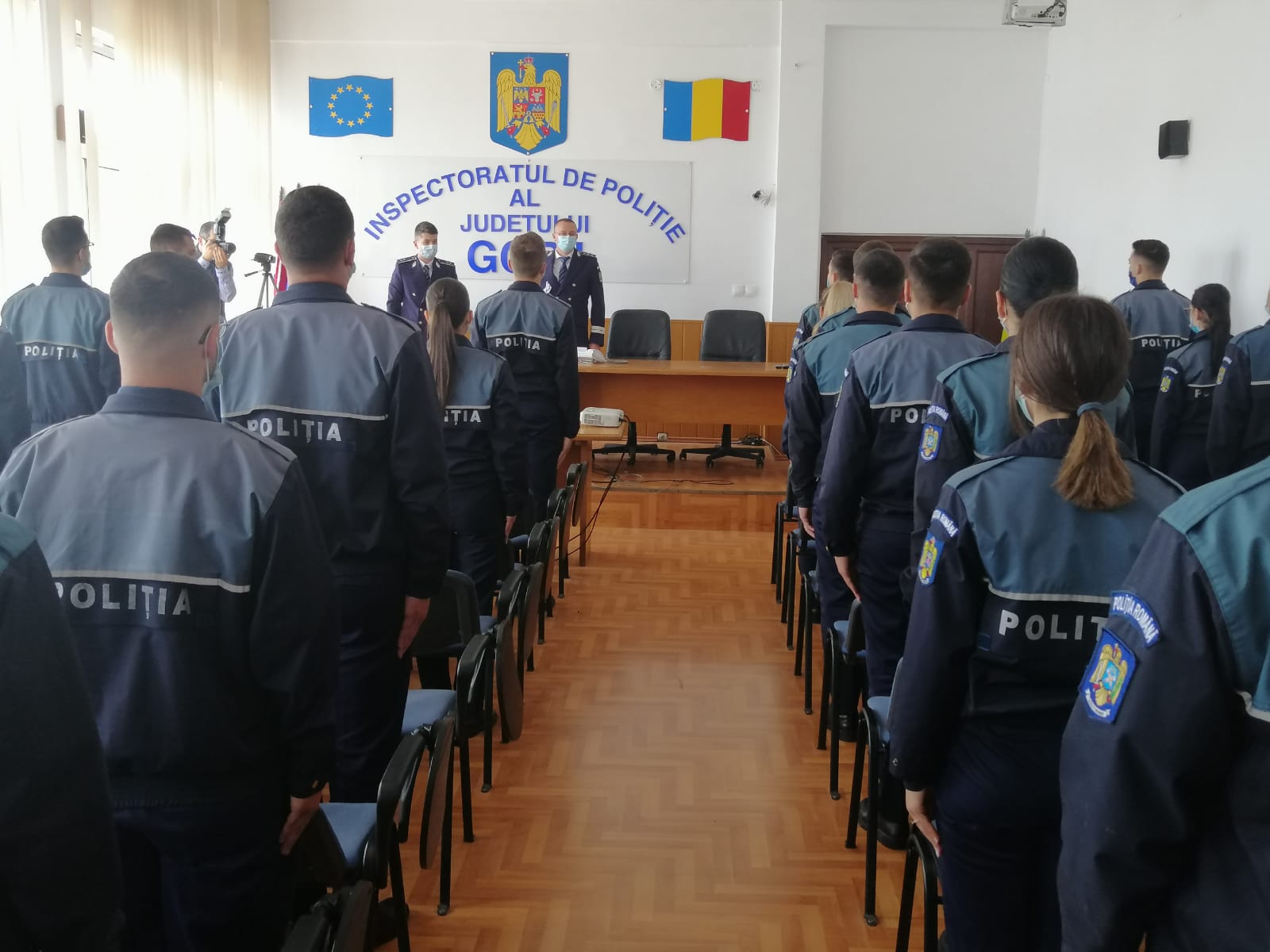 Astăzi, 42 de tineri, admiși la Şcoala de Agenţi de Poliţie „Vasile Lascăr” Câmpina, au depus jurământul militar, la sediul Inspectoratului de Poliție Județean Gorj.