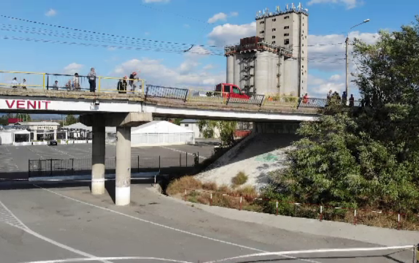 O porţiune din trotuarul unei pasarele din Târgu Jiu a fost demolată luni. Aproape o jumătate de secol nimeni nu s-a îngrijit să o repare.