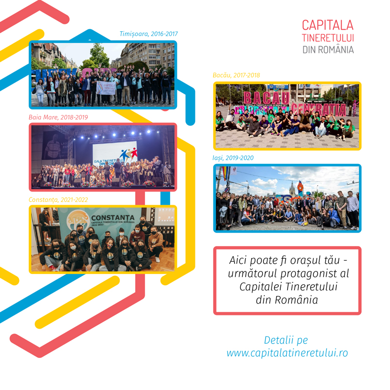 S-a lansat noul apel pentru Capitala Tineretului din România, ediția 2023, care se va desfășura în perioada 1 ianuarie 2023 – 31 decembrie 2023! Orice localitate de rangul 0, I, II sau III (municipii și orașe) din România poate candida pentru acest titlu.