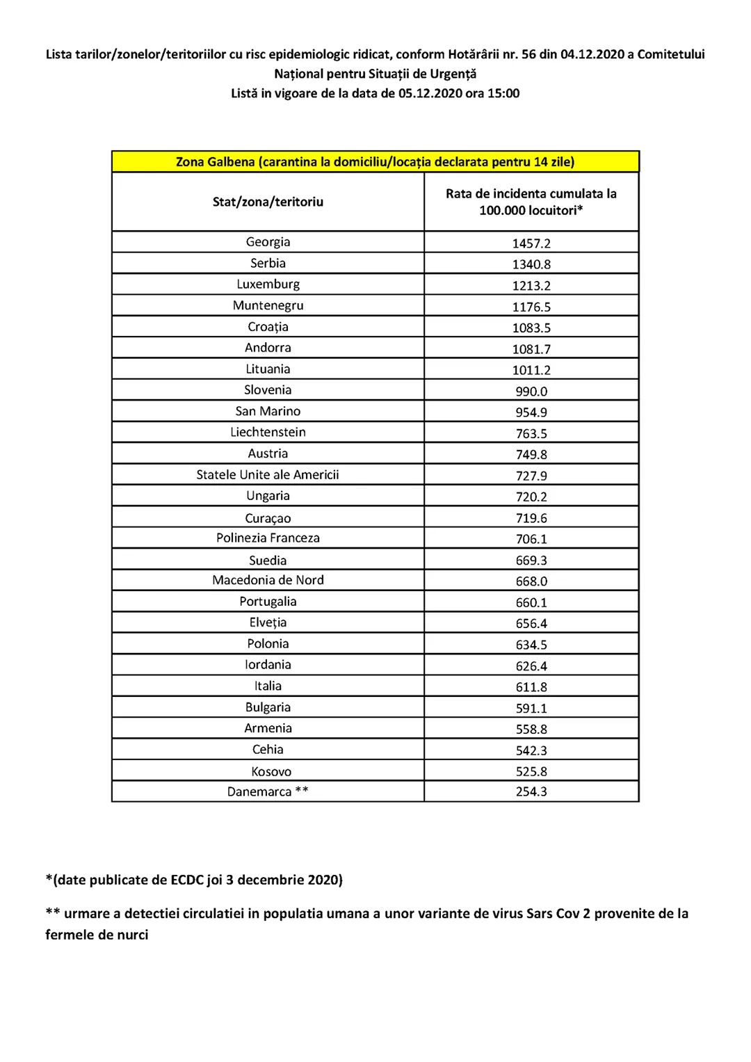 ATENTIE: Lista intra in vigoare de la data de 05.12.2020 ora 15:00