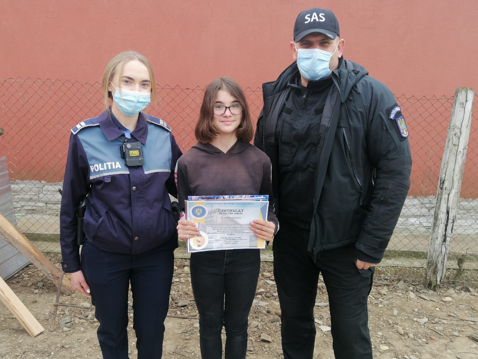 Polițiștii gorjeni au premiat, vineri, o elevă care provine dintr-o familie cu posibilități materiale reduse. Fetița vrea să devină polițistă și este premiantă.