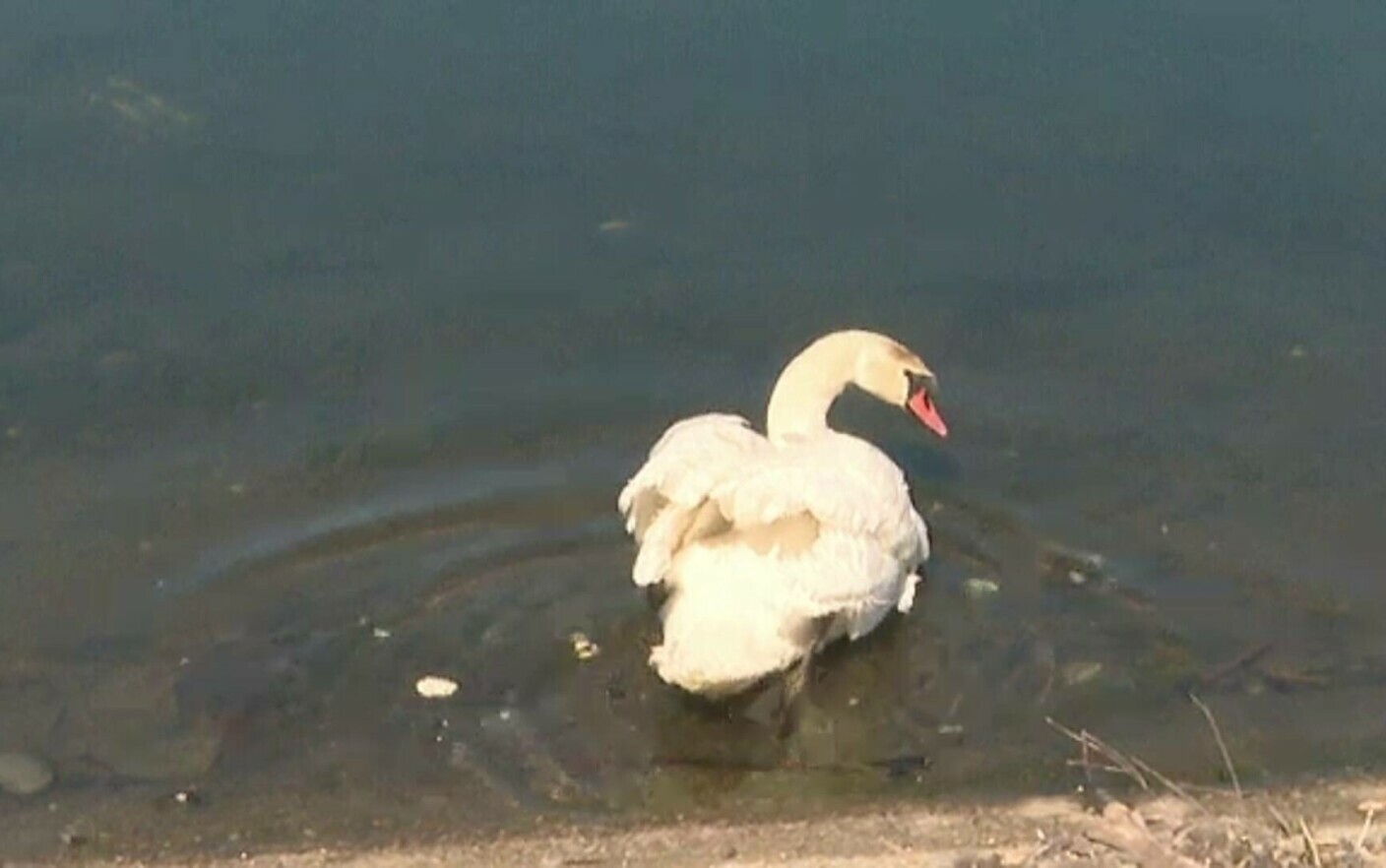 O lebădă a fost salvată la Târgu Jiu, după ce a fost găsită în apropierea unui lac, epuizată, în prag de hipotermie.