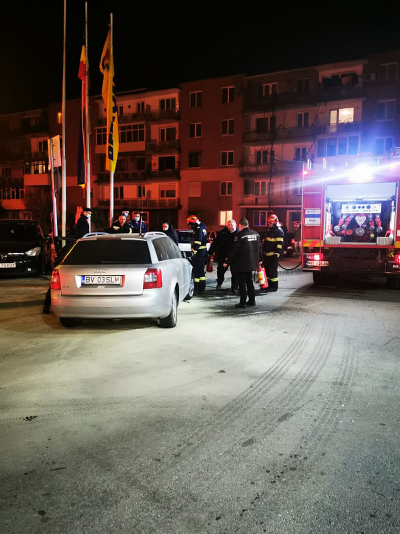 Mașina a fost stinsă de pompieri și de polițiștii locali, ajunși rapid la locul incidentului.
