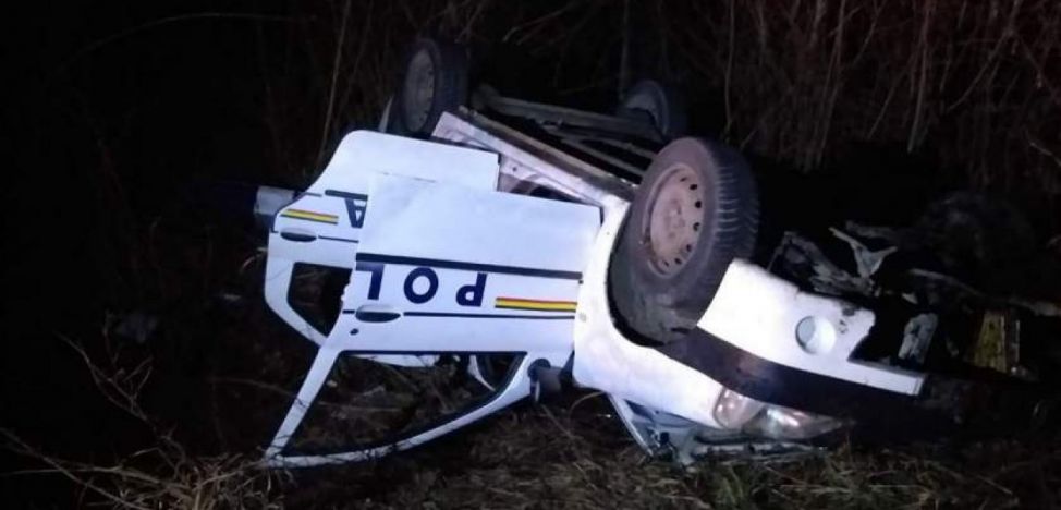 O maşină de poliţie s-a răsturnat într-un şanţ pe marginea Drumului Judeţean 661 de pe raza localităţii Turburea, din judeţul Gorj.
