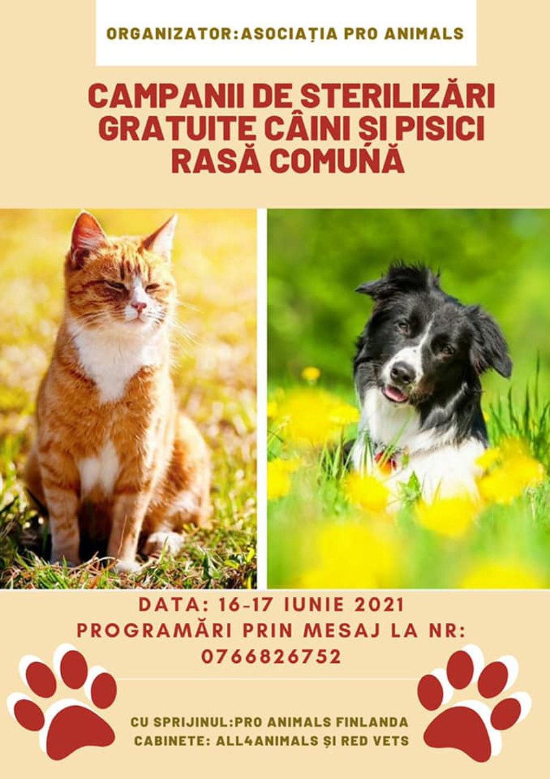 Şi în această lună, Asociaţia Pro Animals demarează o nouă campanie gratuită de sterilizări a câinilor şi pisicilor pentru proprietarii de animale din Târgu-Jiu. Sterilizările vor avea loc în zilele de 16 și 17 iunie 2021. „Locul câinilor și al pisicilor nu este nici pe străzi și nici în adăposturi, iar, din păcate, acestea sunt suprapopulate datorită înmulțirii necontrolate și abandonului (care se sancționează, conform legii în vigoare). Se pot steriliza…