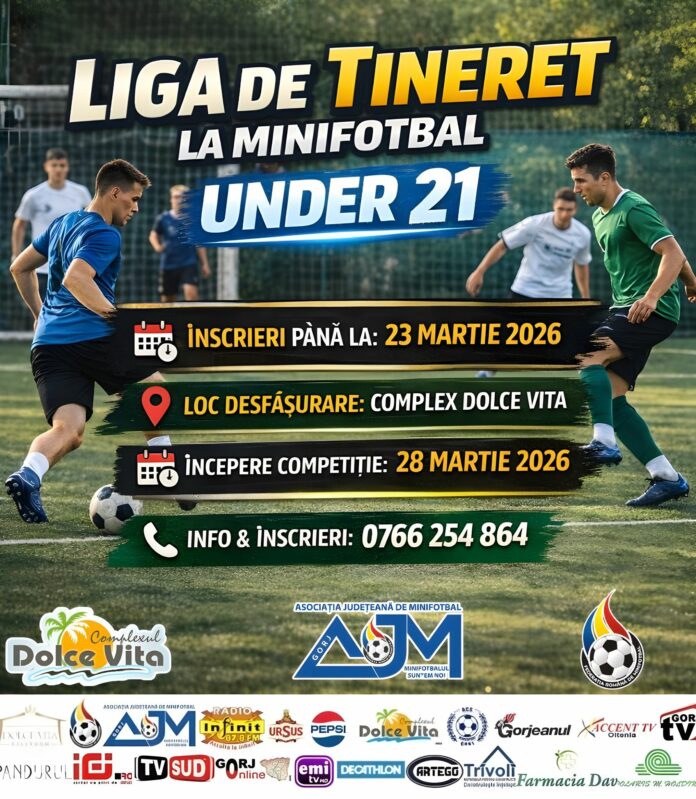 Asociația Județeană de Minifotbal Gorj organizează, începând cu 28 martie, o nouă competiție destinată tinerilor sub 21 de ani. Termenul limită pentru înscriere în Liga de Tineret la minifotbal Under 21 este 23 martie.