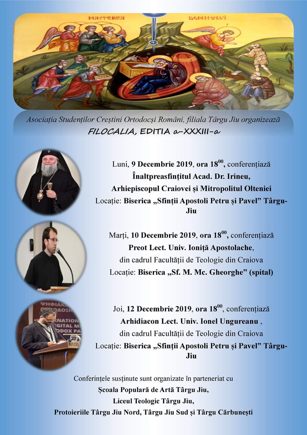 Școala Populară de Artă, în calitate de partener, vă invită la cea de-a XXXIII – a ediţie a manifestării religioase „Filocalia”. Evenimentul se desfăşoară în perioada de post şi rugăciune premergătoare Marelui Praznic al Naşterii Domnului.