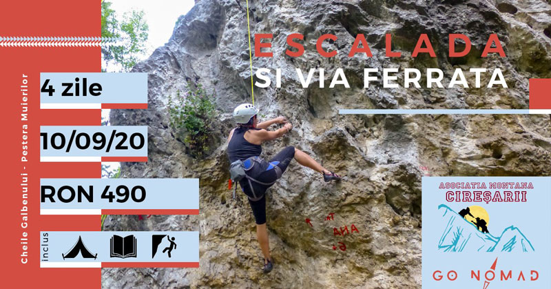 Zona Cheile Galbenului – Peștera Muierilor va fi din nou atracția iubitorilor de alpinism într-o nouă ediție a taberei de instruire organizate de Asociația Montană Cireșarii și Go Nomad.