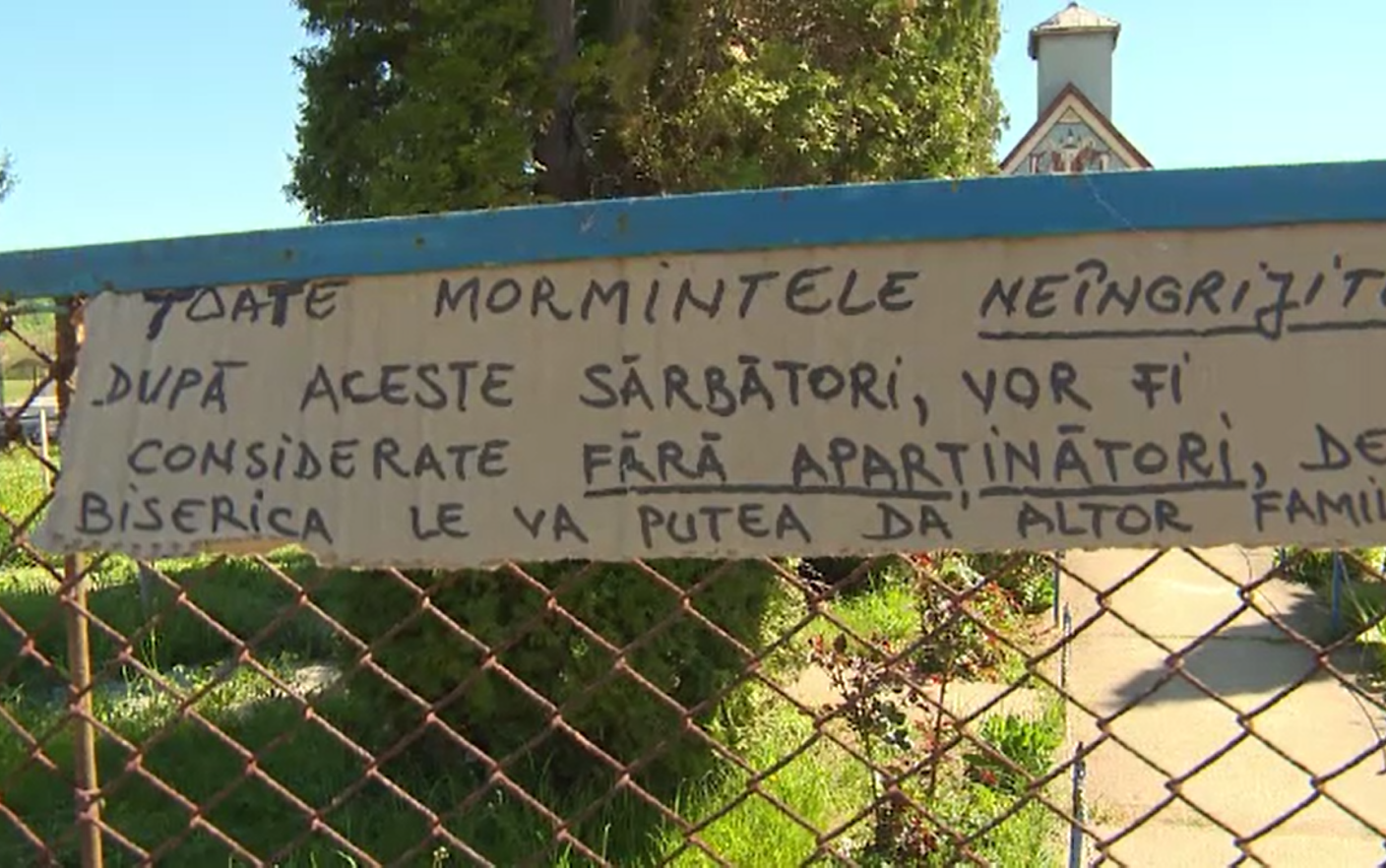 Este fierbere într-o localitate din Gorj, unde oamenii au găsit pe mormintele celor dragi mesaje scrise pe bucăţi de tablă prin care li se cere să le întreţină.