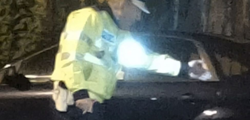 Un poliţist a fost fotografiat fără mască în timp ce se afla pe un bulevard din Târgu Jiu şi oprea maşini pentru verificări.