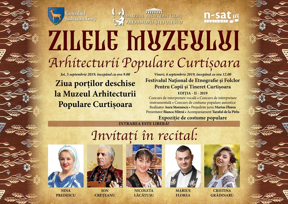 Încep Zilele Muzeului Arhitecturii Populare Curtișoara. În cadrul acestor manifestări are loc cea de-a doua ediție a Festivalului Național de Etnografie și Folclor pentru copii și tineret. Nu mai puțin de 24 de participanți, cu vârste cuprinse între 10 și 16 ani, s-au înscris la cele trei secțiuni ale festivalului: interpretare vocală, interpretare instrumentală și costume populare autentice.
