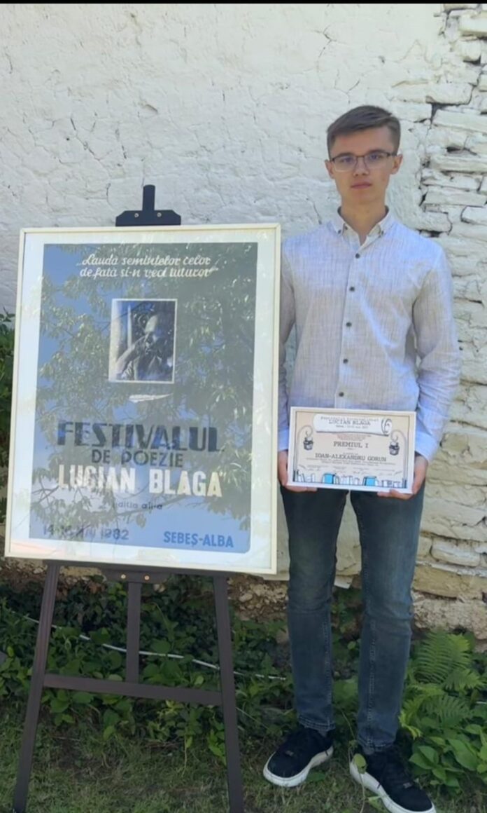 Tânărul Ioan-Alexandru Gorun, elev în clasa a XI – a G, la Colegiul Național Tudor Vladimirescu, din Târgu Jiu, a câștigat Premiul I obținut la concursul de creație literară „Laudă semințelor, celor de față și-n veci tuturor” din cadrul Festivalului Internațional „Lucian Blaga”, desfășurat la Sebeș și Lancrăm, județul Alba, în perioada 23-25 mai 2025, cu eseul intitulat „Ontogeneza vizionară în sistemul poetic al lui Lucian Blaga. Holomorfismul structurilor…