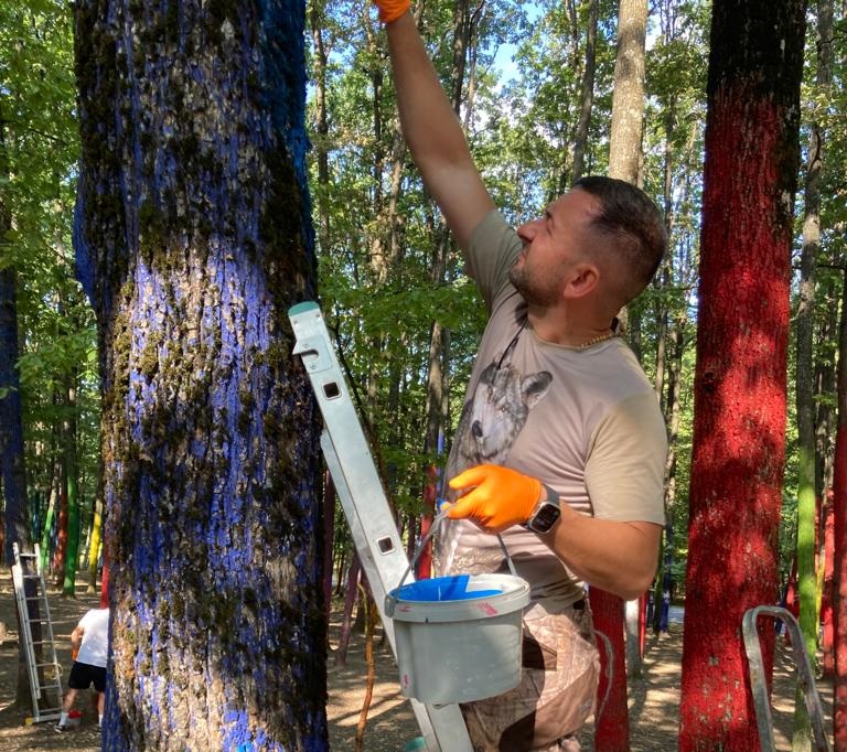 „Pădurea colorată” de la Poienari este revopsită de voluntari, în aceste zile.