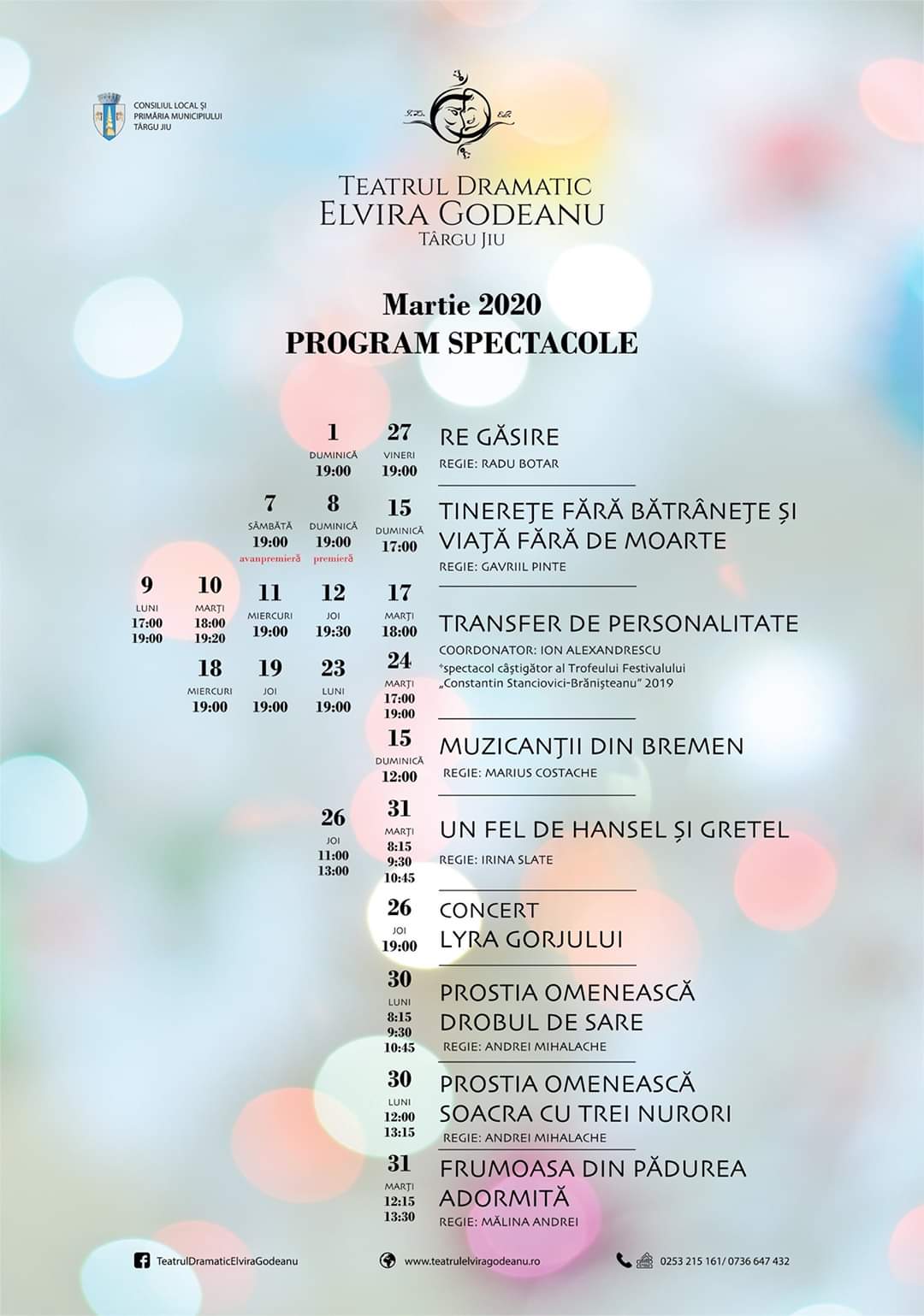 Programul lunii martie, la Teatrul “Elvira Godeanu” Târgu Jiu