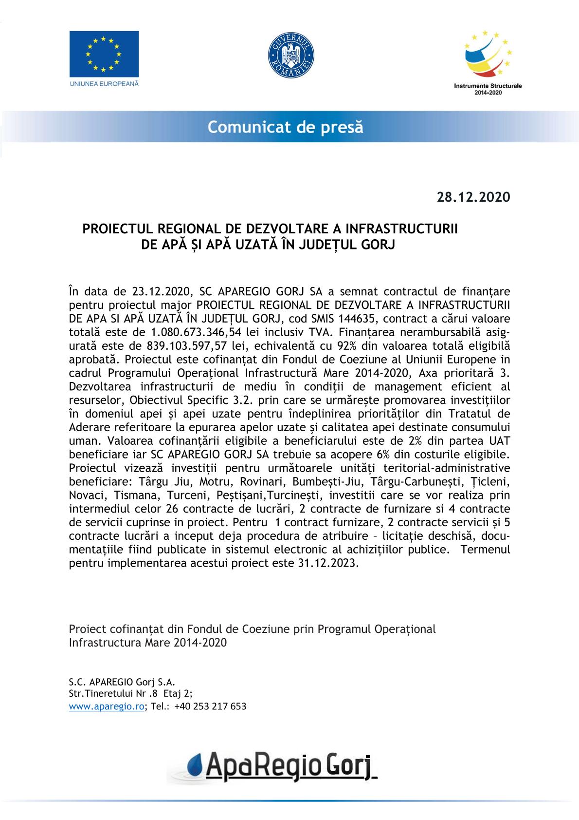Articolul PROIECTUL REGIONAL DE DEZVOLTARE A INFRASTRUCTURII DE APĂ ȘI APĂ UZATĂ ÎN JUDEȚUL GORJ apare prima dată în Impact in Gorj.