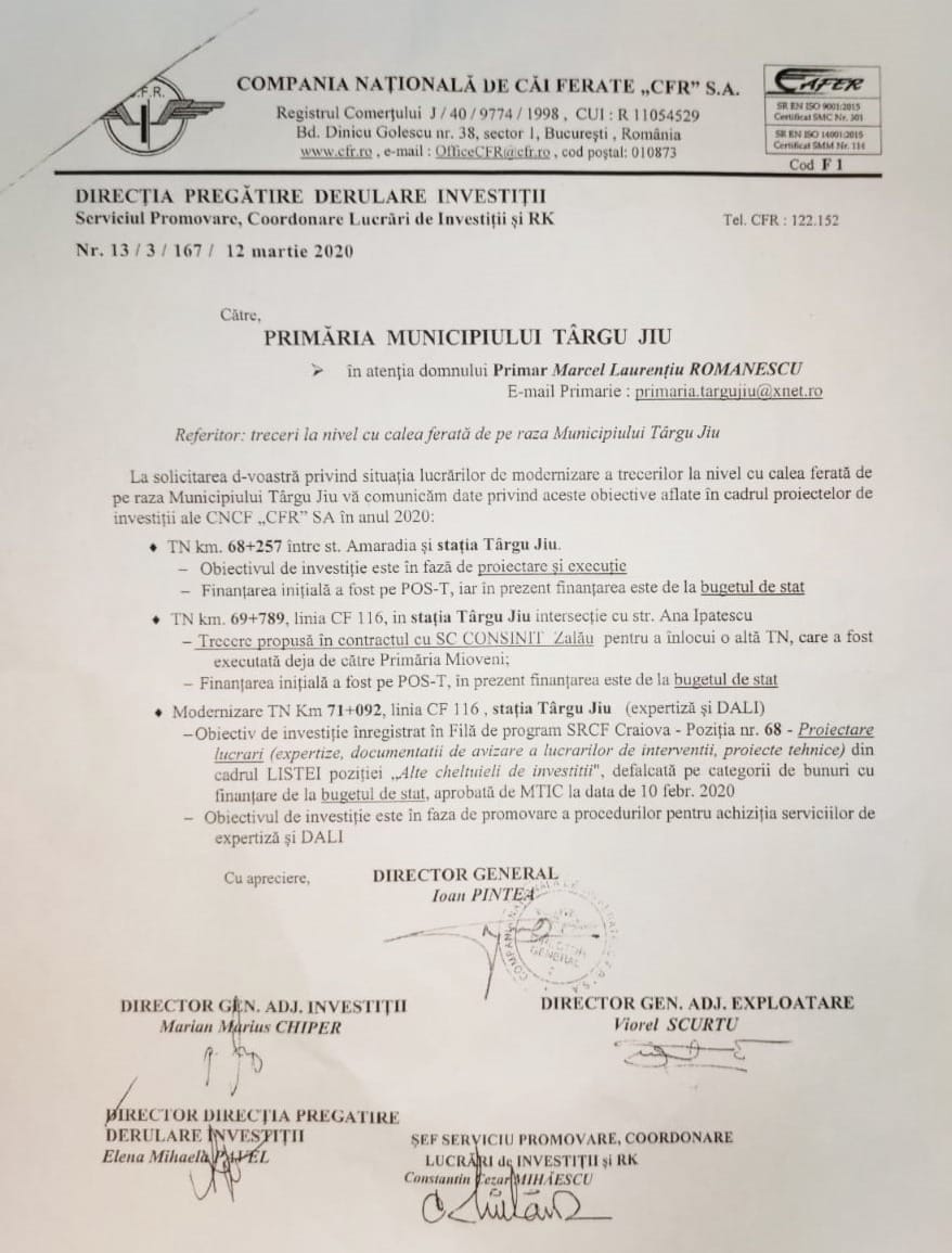 Trei treceri la nivel cu calea ferată din municipiul Târgu Jiu vor fi reabilitate. Anunțul a fost făcut, ieri dimineață, de către edilul municipiului Târgu Jiu, Marcel Romanescu.