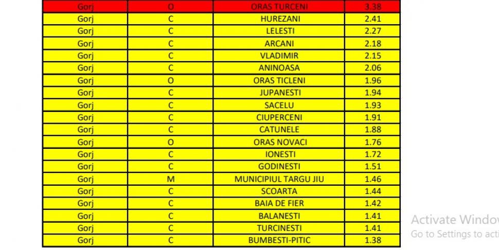 Ministerul Educației a publicat lista cu localitățile unde se redeschid școlile, dar și a celor unde școala va continua în sistem online. În Gorj, orașul Turceni figurează în scenariul roșu, iar alte 29 de localități, între care și municipiul Târgu Jiu, se află în scenariul galben.