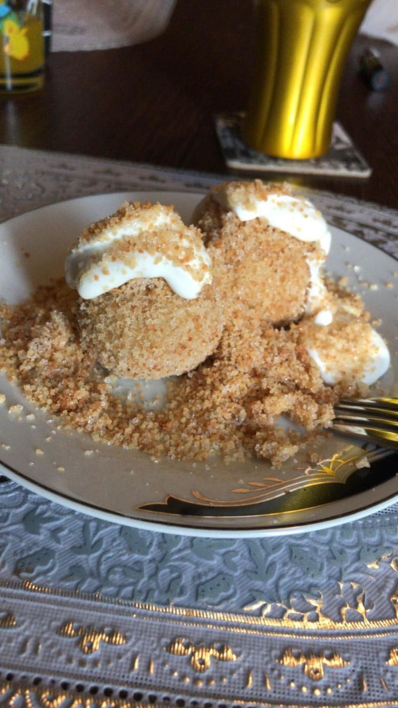 500 ml apă, 50 ml ulei, 500 g făină, 100 g unt, 200 g zahăr, 40 g pesmet, 20 g scorţişoară, 2 ouă, 15 prune, sare.