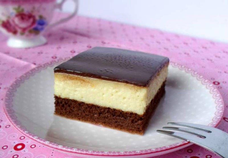 5 albușuri, un vârf cuțit de sare, 6 linguri (60 g) de zahăr, 3 gălbenușuri, 3 linguri (30 g) făină, 2 linguri (20 g) cacao, 1 linguriță (4 g) praf de copt, 4 linguri de apă