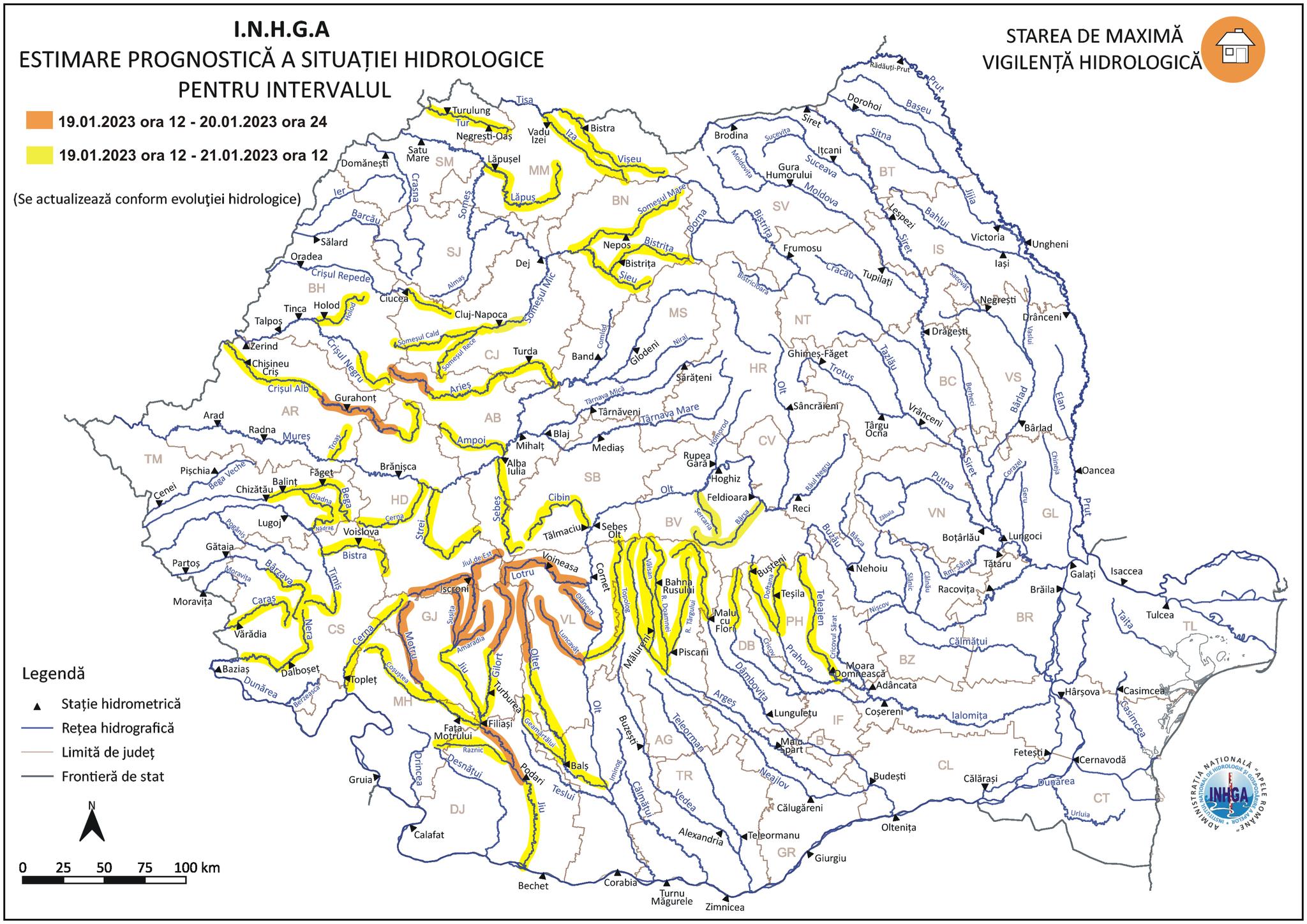 Hidrologii Institutului Național de Hidrologie și Gospodărirea Apelor au extins Codul Portocaliu până mâine, 20 ianuarie, la miezul nopții.Codul portocaliu este după cum urmează:• Jiu – bazinul situat în amonte de stația hidrometrică Rovinari (judeţul Gorj). De asemenea, este afectat și sectorul situat în aval de confluenţa cu râul Motru și amonte de stația hidrometrică Podari (judeţul Dolj);• Motru – bazinul situat în amonte de stația hidrometrică Broşteni…