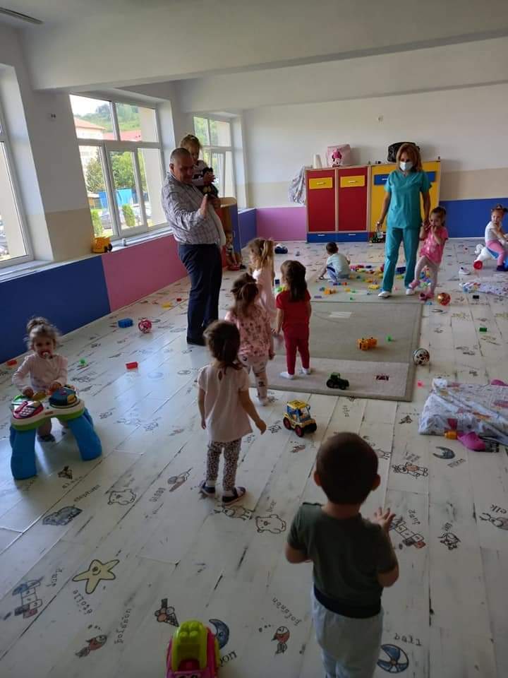 De altfel, și creșă din incinta Grădiniței a beneficiat de modernizări interioare, dotarea cu mobilier de protecție, de covoare iar astăzi, prin implicarea primarului, au fost puse și noi perdele și fețe de masă.