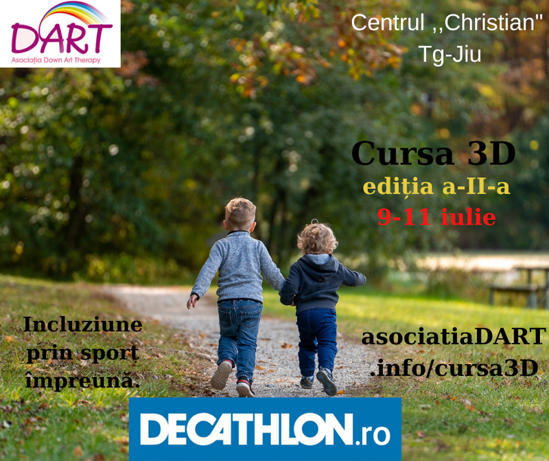 Asociația Down Art Therapy, alături de Centrul ,,Christian” Târgu-Jiu, a lansat evenimentul Cursa 3D, ediția a II-a, dedicată persoanelor cu dizabilități din județul Gorj și voluntarilor ce vor alerga în tandem cu aceștia.