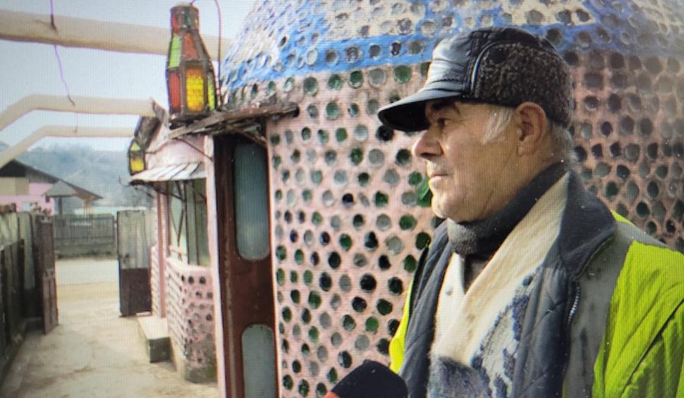 Un cetăţean dintr-o localitate din judeţul Gorj şi-a construit o căsuţă din sticle. Acesta spune că s-a apucat de construcţie în anul 1998, supărat fiind pe soţia care l-a părăsit. Peste 10.000 de sticle au fost folosite pentru a ridica locuința.