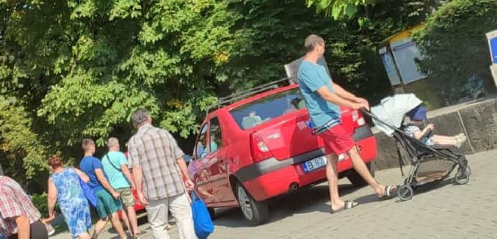 Două autoturisme au fost parcate, în această dimineaţă, chiar pe aleea de intrare în Parcul Central din Târgu Jiu, la câţiva metri de Poarta Sărutului, operă a marelui sculptor Constantin Brâncuşi.