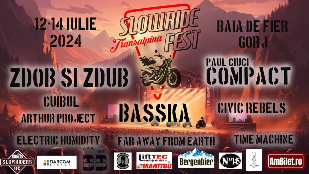 Slowride Transalpina Fest, în Baia de Fier continuă și în 2024. Cea de-a cincea ediție a festivalului strânge din nou pasionații de motociclete și muzică bună la Baia de Fier, județul Gorj, de această dată în week-end-ul 12-14 iulie.