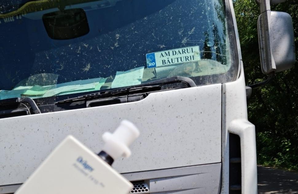 Un șofer de tir ce avea în parbriz o plăcuță pe care scrie ”Am darul băuturii” a refuzat să oprească la semnalul poliției pe un drum din Timiș, însă a fost până la urmă pe dreapta, iar etilotestul a arătat că el chiar consumase băuturi alcoolice.
