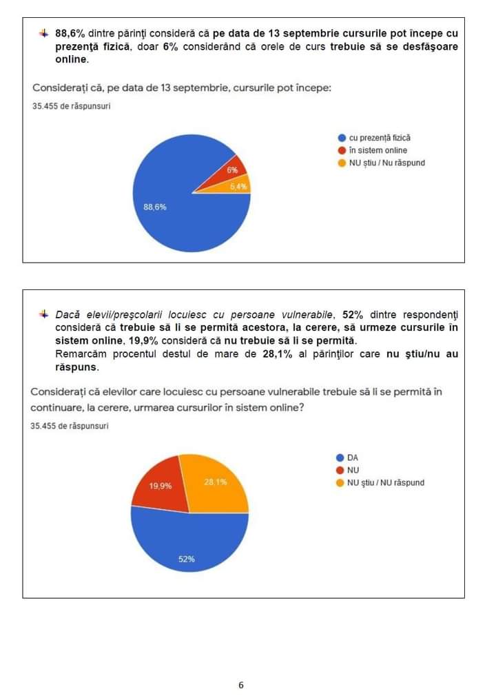 Federația Națională a Asociațiilor de Părinți a făcut publice în această dimineață rezultatele sondajului privind condiţiile în care părinții consideră că ar trebui să se desfășoare cursurile în anul şcolar 2021-2022.