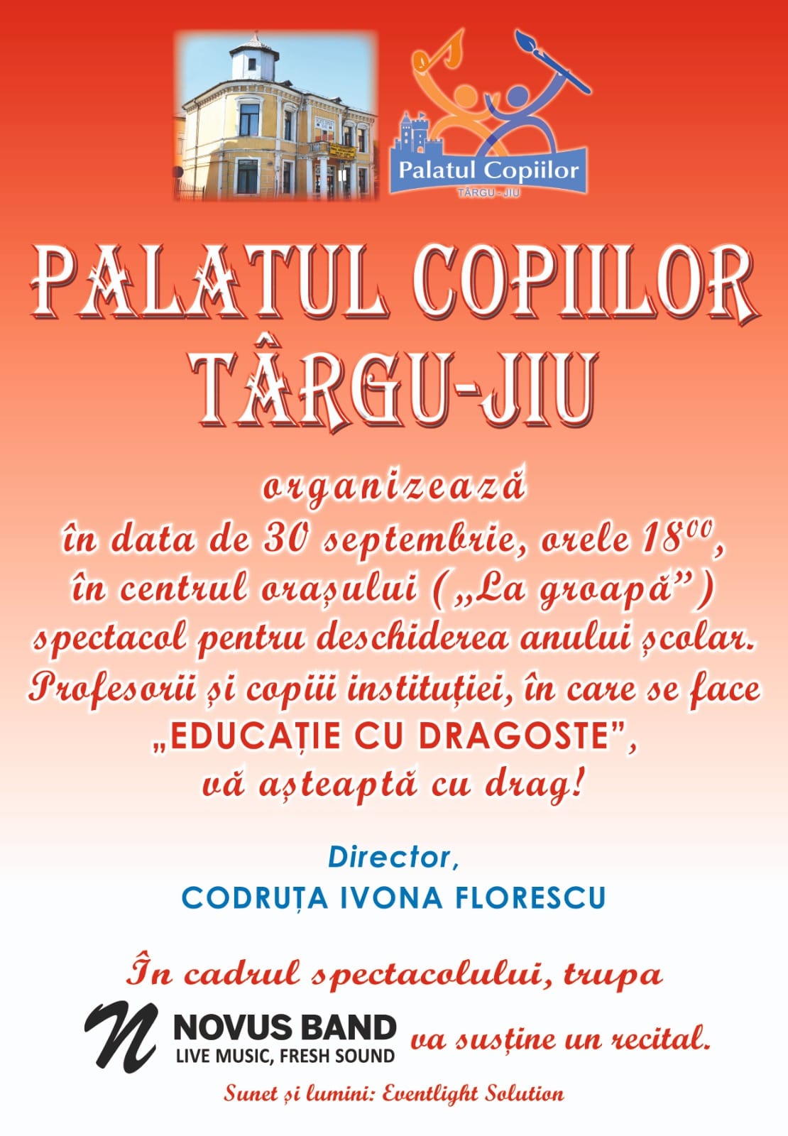 Spectacol la deschiderea noului an şcolar, organizat de Palatul Copiilor Târgu Jiu