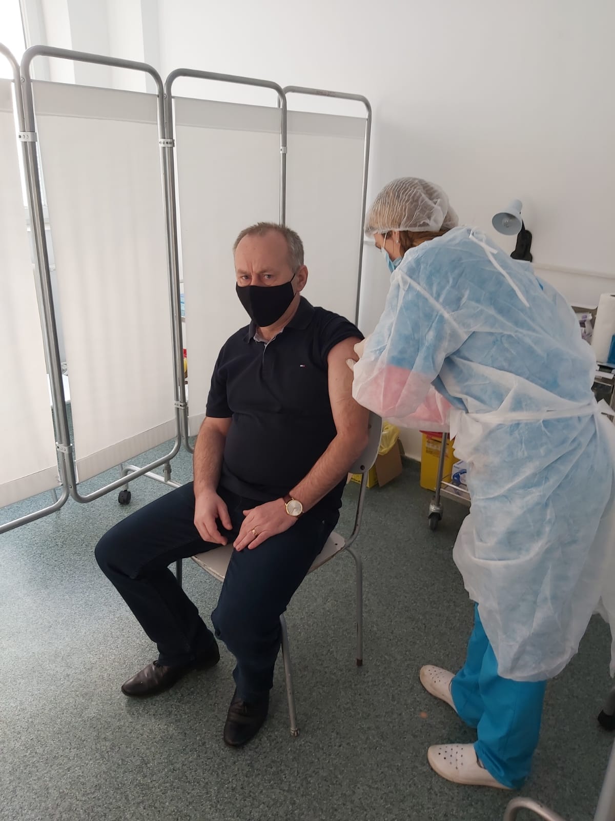 Subprefectul de Gorj, Virgil Drăgușin, s-a vaccinat astăzi împotriva Covid-19 la centrul de vaccinare amenajat în cadrul spitalului din Rovinari.