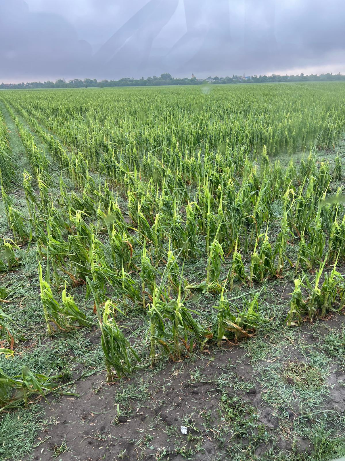 Sute de hectare de culturi agricole au fost distruse de grindina de mari dimensiuni căzută, joia trecută, în sud-vestul județului Gorj.