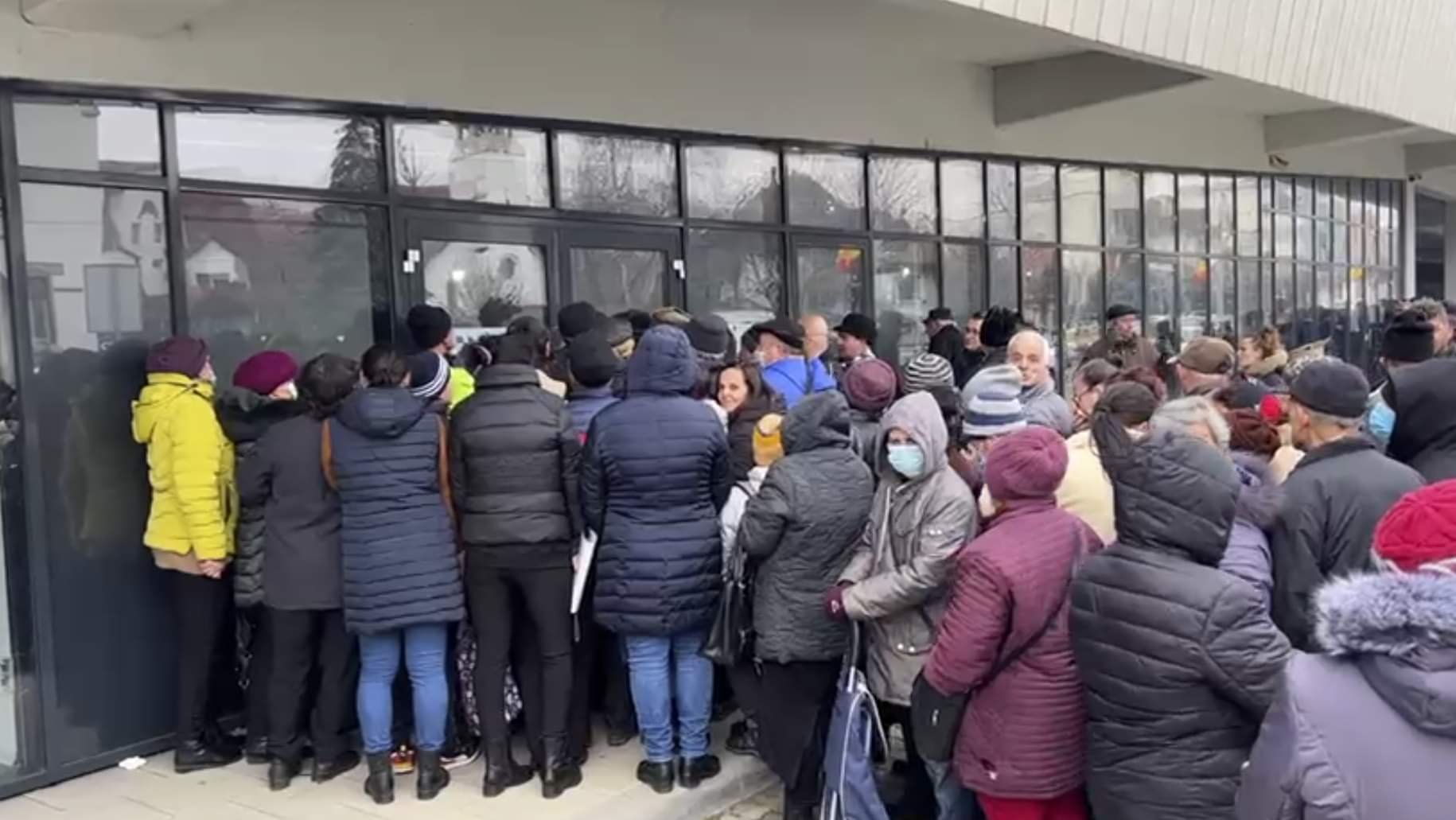 Sute de oameni s-au înghesuit luni la două instituții publice din Târgu Jiu pentru a achita impozitele locale sau pentru a ridica alimentele oferite gratuit printr-un program al Uniunii Europene.