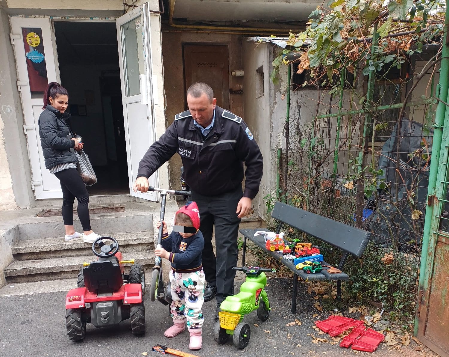 O fetiță de aproximativ 3 ani, din Târgu Jiu, plecată duminică de acasă a fost recuperată de pe stradă de un echipaj al Poliției Locale.