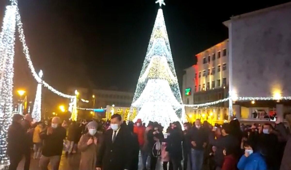 Nu s-a păstrat distanțarea fizică, însă s-a purtat mască. Autoritățile locale au decis ca din acest an să monteze din nou în centrul orașului bradul digital care a costat 100.000 de euro.