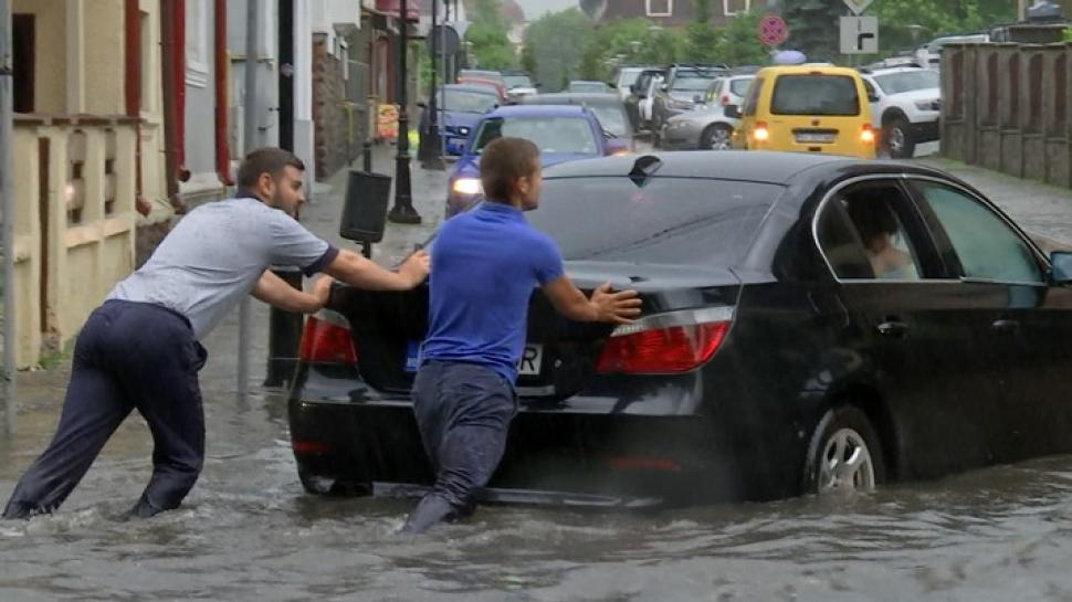 A fost un trafic de coșmar în Târgu Jiu, miercuri seara, după un potop de câteva zeci de minute. Străzi importante din oraș au devenit impracticabile, Poarta Sărutului a fost înconjurată de apă și mulți șoferi au fost nevoiți să împingă mașinile după ce li s-au oprit în mijlocul apelor.