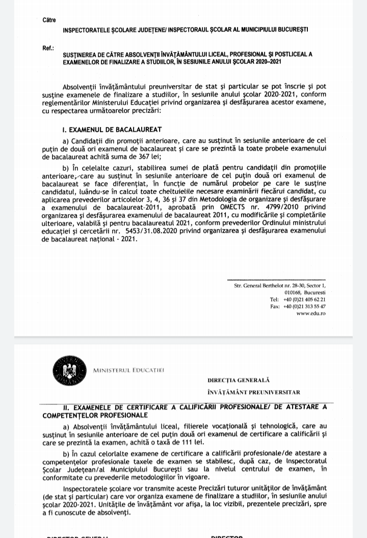 Anul acesta, candidații din promoții anterioare, care au susținut în sesiunile anterioare de cel puțin de două ori examenul de bacalaureat și care se prezintă la toate probele examenului de bacalaureat trebuie să achite suma de 367 lei, se arată într-o adresă a Ministerului Educației. În celelalte cazuri, stabilirea sumei de plată pentru candidații din promoţiile anterioare, care au susținut în sesiunile anterioare de cel puțin două ori examenul de bacalaureat se face…