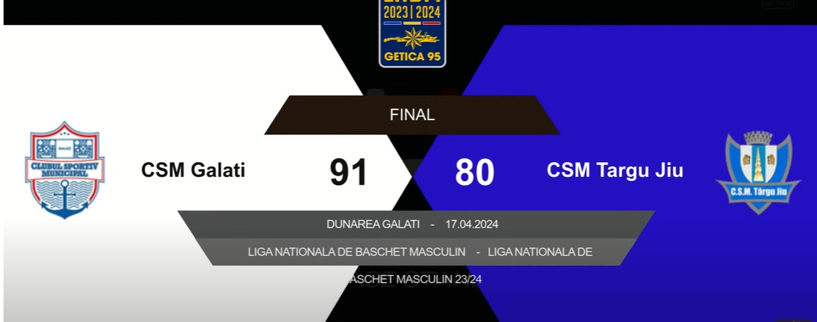 CSM Târgu a pierdut, miercuri, meciul 4 din seria de play-out din Liga Națională de Baschet Masculin Getica 95, scor 80-91. Echipa din Galați a câștigat seria cu 3-1.