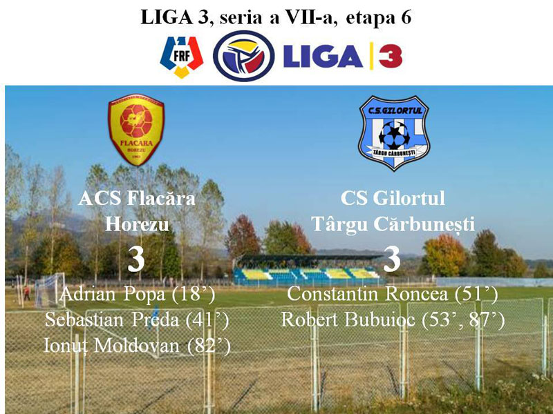 Gilortul Târgu Căbuneşti îşi continuă prestaţiile îndrăzneţe în Liga a treia. Trupa lui Florin Popete şi Bogdan Chiriac a remizat cu Flacăra (3-3), după un meci în care a revenit în stil de mare echipă. Prima repriză a fost la discreţia gazdelor, care au intrat la cabine cu un avantaj de două goluri. Adrian Popa (18’) şi Sebastian Preda (41’) au punctat pentru trupa vâlceană. Totuşi, ,,olarii” s-au văzut prea repede cu punctele în sac, iar vizitatorii au…