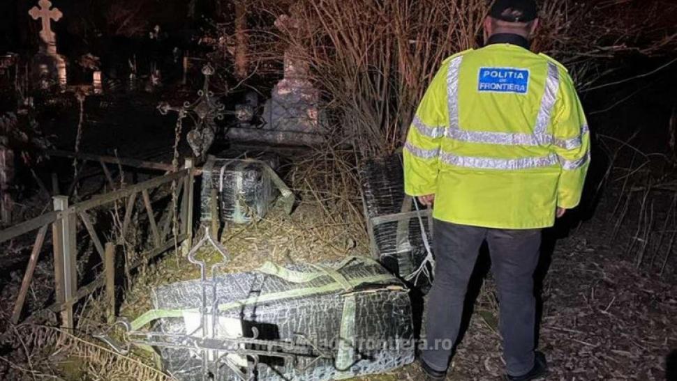 Polițiștii de frontieră botoşăneni au descoperit, în urma unei acțiuni, 6.734 de pachete cu ţigarete de contrabandă, în valoare totală de aproximativ 68.000 de lei, ascunse într-un cimitir.